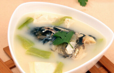 1、丝瓜豆腐鱼头汤:取丝瓜500克,鲜鱼头1个,豆腐适量,生姜、盐适量。 将丝瓜洗净打理角边切段;鱼头洗净切开;豆腐用清水略洗;鱼头和生姜放入煲里,加入适量滚水旺火煲20分钟,放入豆腐和丝瓜,再用小火煲15-20分钟,加入调味品即可服食。此汤具有清热去火、养阴生津、洁肤除斑、通经络、去痰喘咳嗽等多种功效。