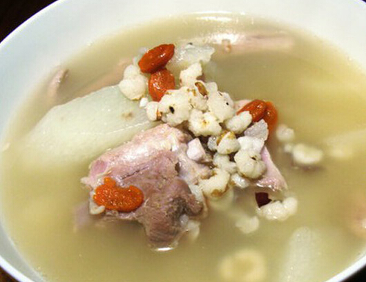 做法:排骨洗净斩件,以盐、生抽、花生油拌匀备用;红枣、薏米洗净,浸泡30分钟备用;煮开鸡汤,放入红枣、薏米和姜片慢火煮30分钟,然后放入排骨和淮山中火煮熟,最后调味即成。