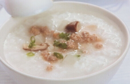 山药猪肉粥:取山药20克左右切片,与适量猪肉末一起,与大米粥同熬即可。中医认为山药不燥不腻,入肺、脾、肾经,既可健脾助消化、又有益肺止咳的作用。尤其适合平常体质较弱、易疲劳、口淡、大便稀、面色白等有气虚表现的人,在补充营养的同时,增强体质。