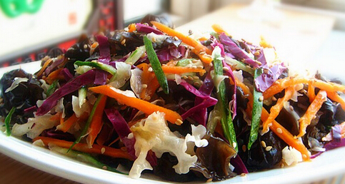做法:洋花萝卜洗净后,在温水里泡洗半小时;用刀将洋花萝卜拍碎后用盐腌渍入味;银耳泡发后,入锅加水煮至绵糯后捞出,沥干水分;将腌渍好的洋花萝卜、银耳一同置于器皿中,淋入香醋、豉油、白糖、麻油、胡椒粉、蒜片等拌匀,十五分钟后即可食用。