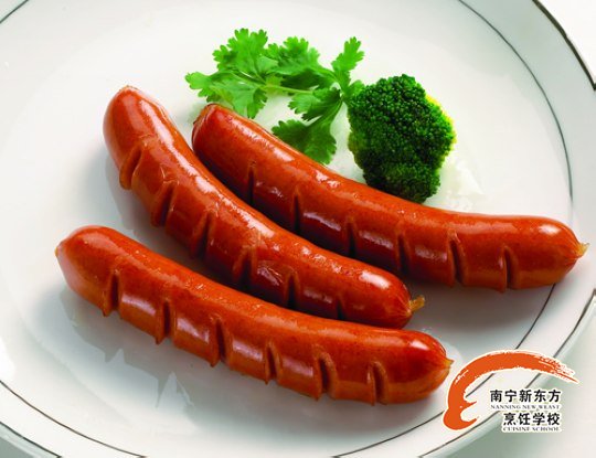 广西华南烹饪学校核心提示:用冷水下锅煮香肠、火腿,这样才能让水分缓慢地渗入肉的组织中,让本来干瘪的香肠、火腿变得更加滋润。