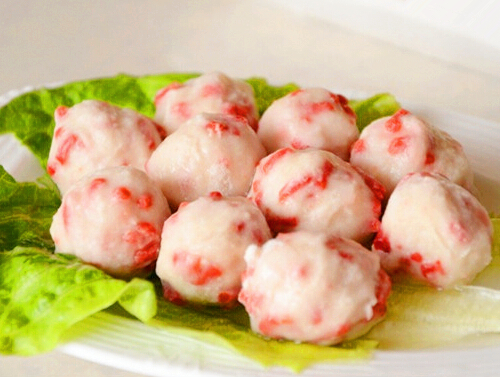 原料:虾仁、猪肉馅、葱、姜、鸡蛋、胡椒粉、盐、绍酒、椒盐。