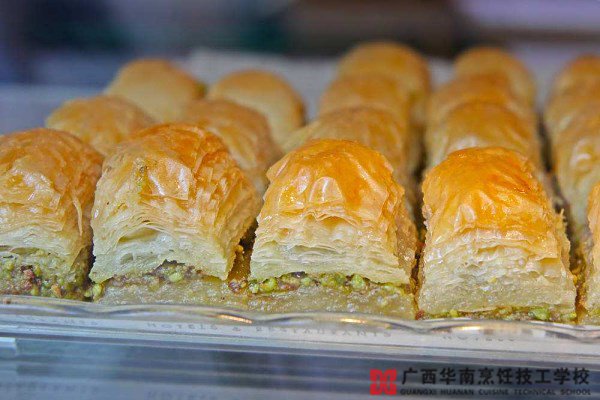 3.土耳其果仁蜜饼:土耳其的烤肉比较出名,经典甜品果仁蜜饼也是比较好吃流行于东欧大街小巷。果仁千层酥饼的口感比较丰富而且酥脆好吃被深深的吸引,吃多了会有一点甜腻。