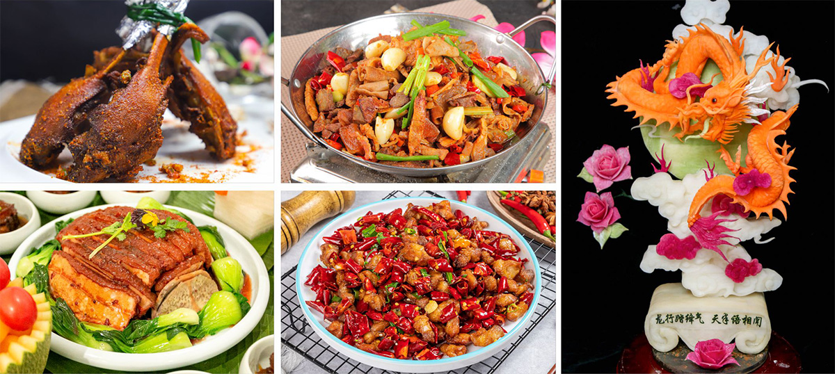 主干课程:粤菜、川湘代表菜、广西名菜、广式面点、广式烧腊、食品雕刻、冷拼与盘饰、水果拼盘、宴席制作指导、技能鉴定考试等。