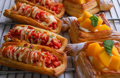 可颂面包、丹麦热狗面包、脏脏包、丹麦小披萨、丹麦菠萝包、双色可颂、丹麦草莓、焗烤榴莲包、紫檽米紫薯软欧、田园南瓜包、法棍等