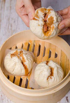 - 蚝皇叉烧包、新鲜肉包、法式餐包、核桃包、流沙包、香煎包、养生黑米包、虾饺、水晶蒸饺、鲜虾带子饺、马蹄粉蒸饺、杂粮馒头等。